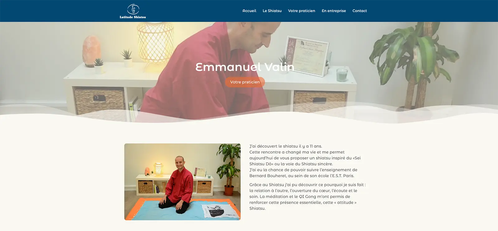 Objectif du site : Informer sur le shiatsu (définition, bienfaits, méthode) et présenter le praticien Emmanuel Valin
