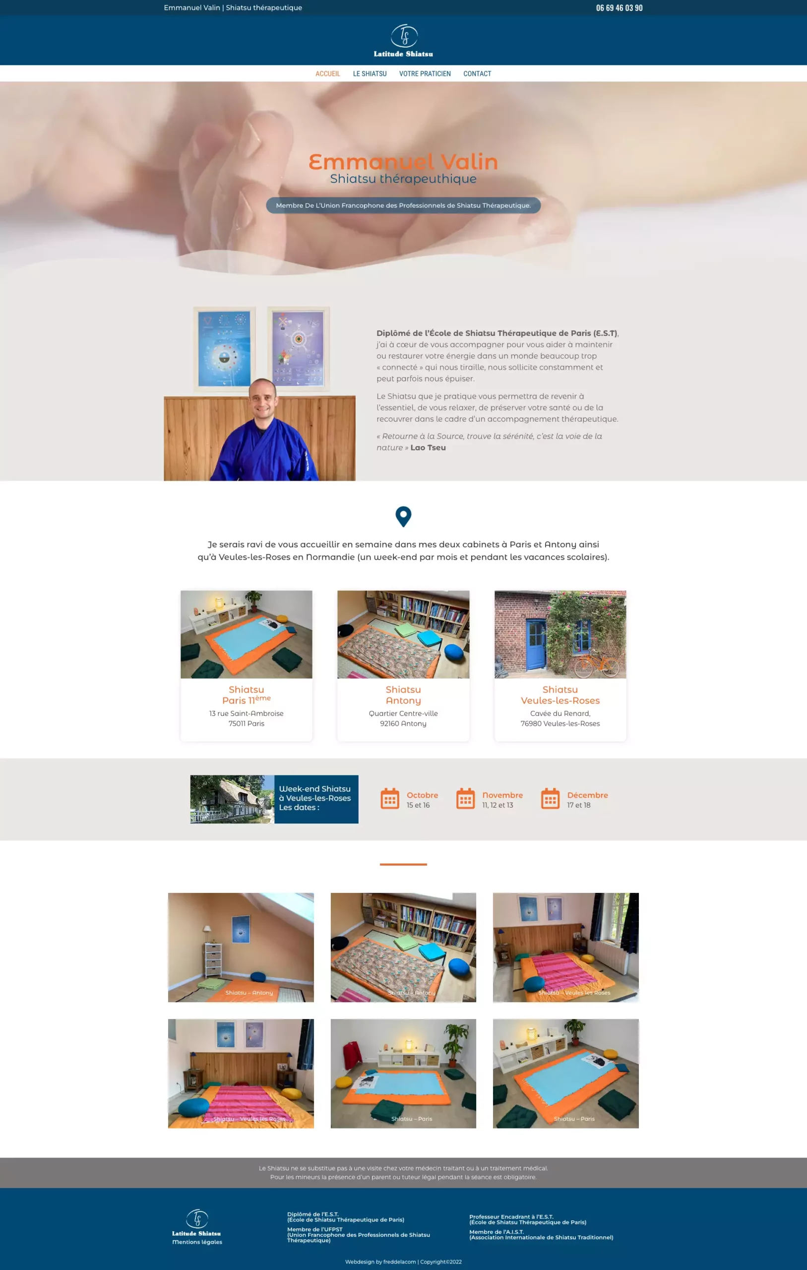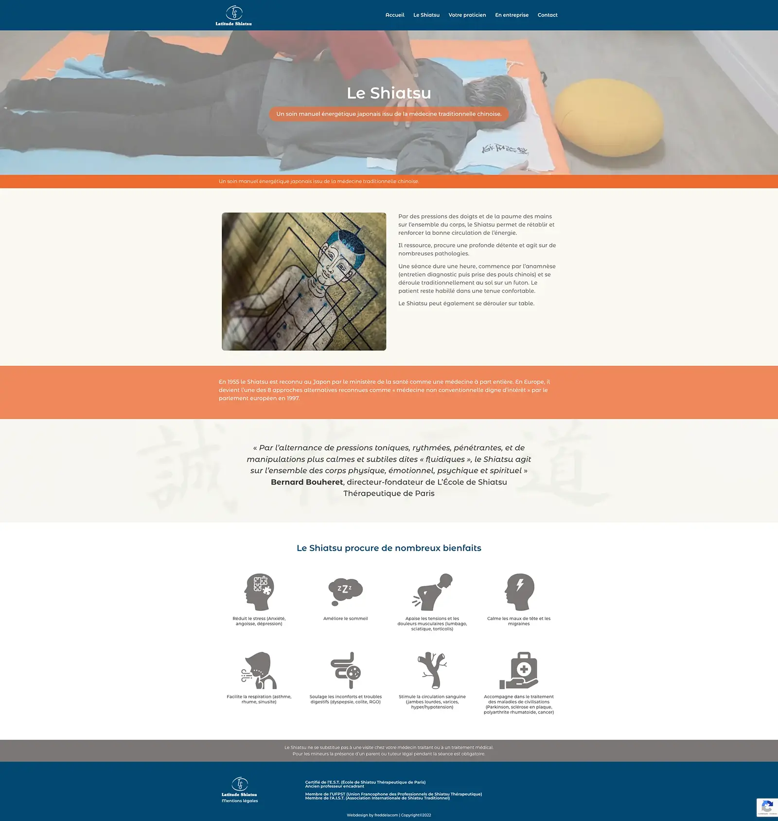 Type de site : site vitrine professionnel pour une association / praticien proposant des informations sur les services, les cabinets, les tarifs, le shiatsu, les interventions en entreprise
